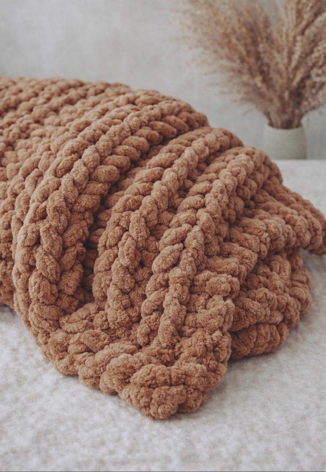 GRUBA Włóczka BLANKET 300g na KOC Chenille do robienia PALCAMI brąz 337