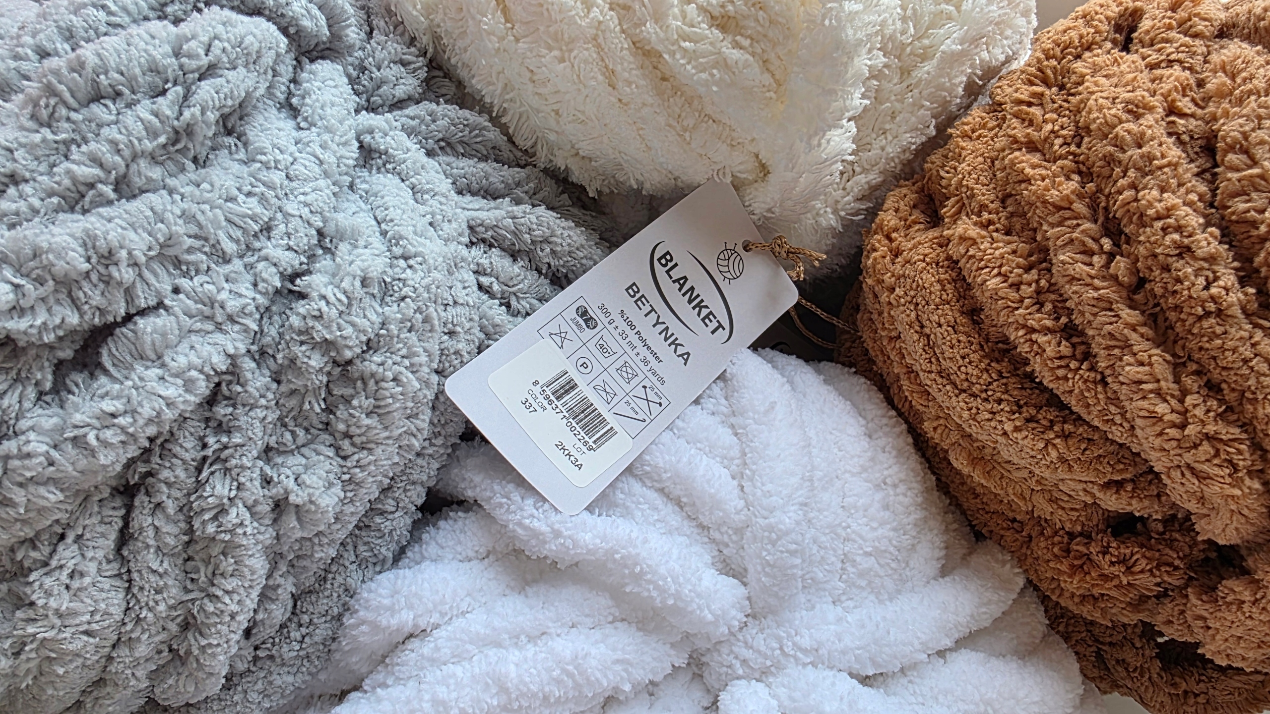 - Ile potrzebujesz orientacyjnie motków? – poduszka 45x45 - ok. 1 motek– koc 70x90- ok. 3 motki– koc 100x150- ok. 6-7 motków– koc 120x150- ok. 7-8 motków