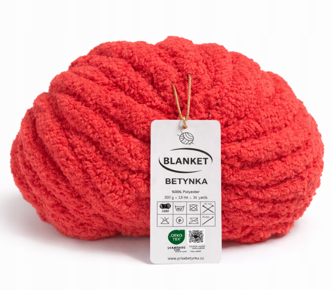 GRUBA Włóczka BLANKET 300g na KOC Chenille do robienia PALCAMI czerwień 318