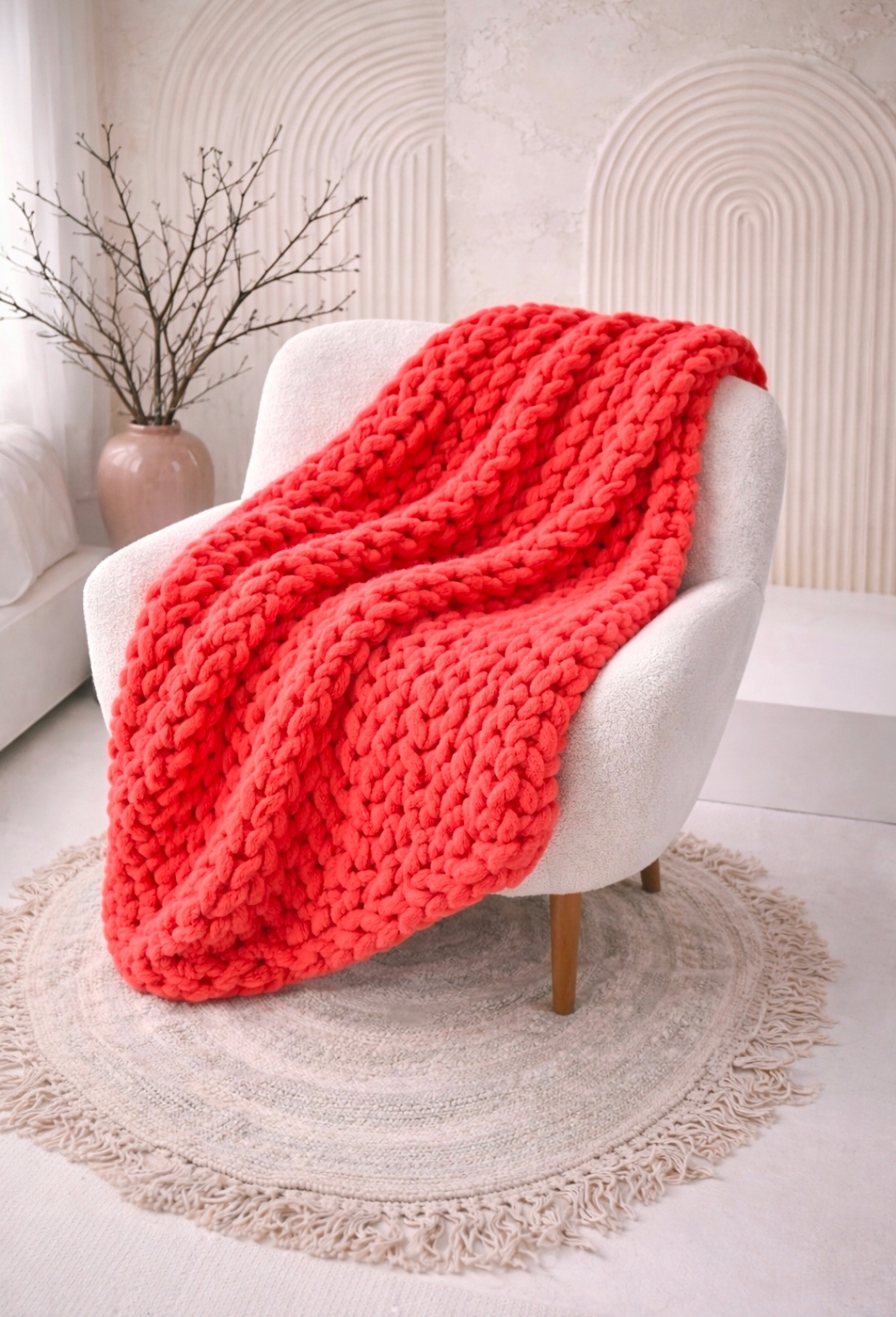 - Dlaczego ją pokochasz ?– Możesz dziergać na palcach (arm knitting) - bez narzędzi– Idealna także do drutów i szydełka 20-25mm– Gotowy projekt WOW nawet w kilka godzin.– Miękka, puszysta i przyjemna dla skóry– Świetna na prezent lub do odświeżenia wnętrza.