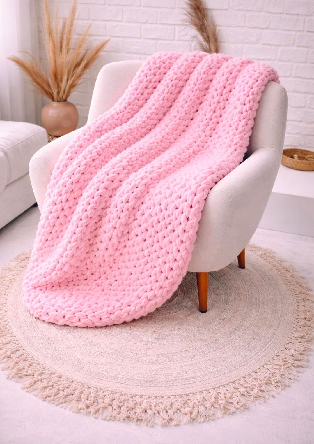 - Dlaczego ją pokochasz ?– Możesz dziergać na palcach (arm knitting) - bez narzędzi– Idealna także do drutów i szydełka 20-25mm– Gotowy projekt WOW nawet w kilka godzin.– Miękka, puszysta i przyjemna dla skóry– Świetna na prezent lub do odświeżenia wnętrza.